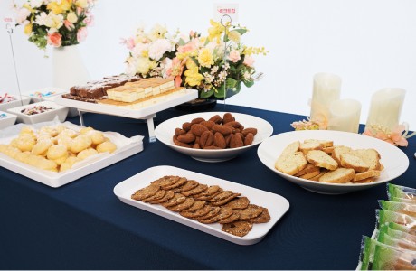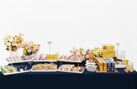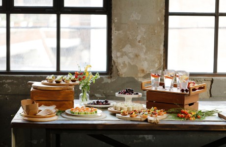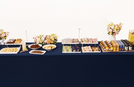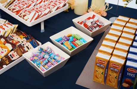가장 인기 많은 구성으로 수제 느낌의 고급 간식과 음료로 구성된 테이블형 케이터링이에요.
